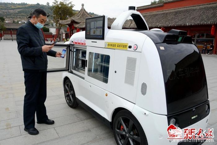 据秦州区城乡环卫中心伏羲城步行街管理办公室工作人员介绍,这辆无人便民售货车可以按照设定好的路线、时间在伏羲城内移动售货,自主泊车,游人可以在招手即停、扫码支付中享受到无人售货车的便利服务,这辆无人便民售货车自投入使用以来,受到了很多年轻人的青睐,成为伏羲城又一道移动的美丽风景。