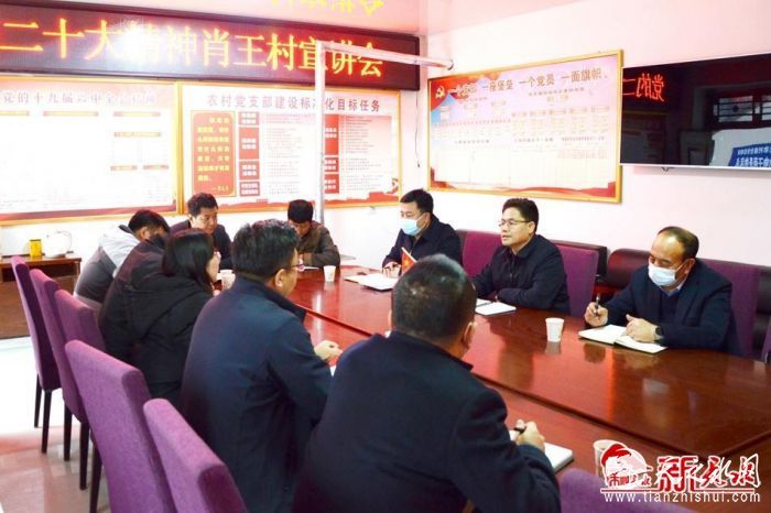 新天水讯【记者王晓馨】近日,市委副书记、市长王国先到党支部工作联系点和乡村振兴包抓村——麦积区新阳镇坚家山村、肖王村,宣讲党的二十大精神,并实地调研基层党组织建设、农村基础设施改造、人居环境整治、特色产业和村集体经济发展,通过入户走访群众,详细了解群众生产生活、产业增收等情况,现场解决群众存在的困难问题。他强调,要全面学习、深刻领会、准确把握党的二十大精神,自觉把学习成果转化为拥护“两个确立”、做到“两个维护”的实际行动,转化为抓产业、谋发展、促振兴的具体举措,推动党的二十大精神在基层落地生根、开花结果。