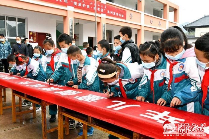 新天水讯【特约通讯员 窦耀辉】近日,由天水市委宣传部、市委网信办、市教育局主办的天水市2022年“陇原护苗·绿书签”系列宣传活动,在麦积区麦积镇滩子小学举行。