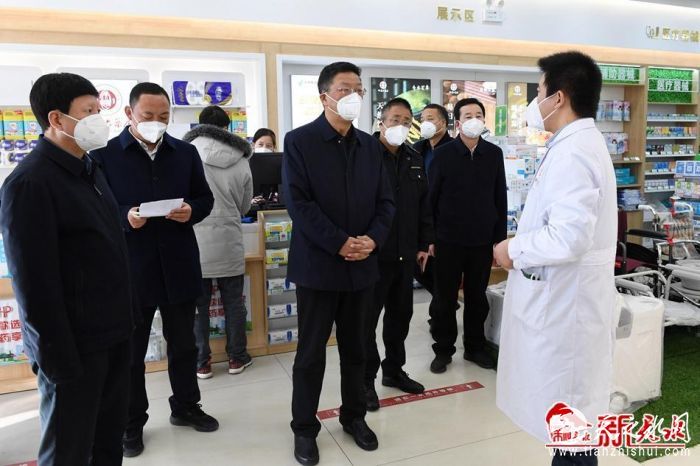 在天水西城药业有限公司、佛慈大药房天水中心广场店,冯文戈详细了解药物储备供应情况。他指出,保障群众就医用药是当前工作重点,要加大重点药品和防护物资的储备和投放,全流程保障涉疫药品各环节运转顺畅,加强药品市场价格监管,依法严厉打击哄抬物价、捆绑销售等扰乱社会秩序行为,全力保障人民群众生命安全和身体健康。