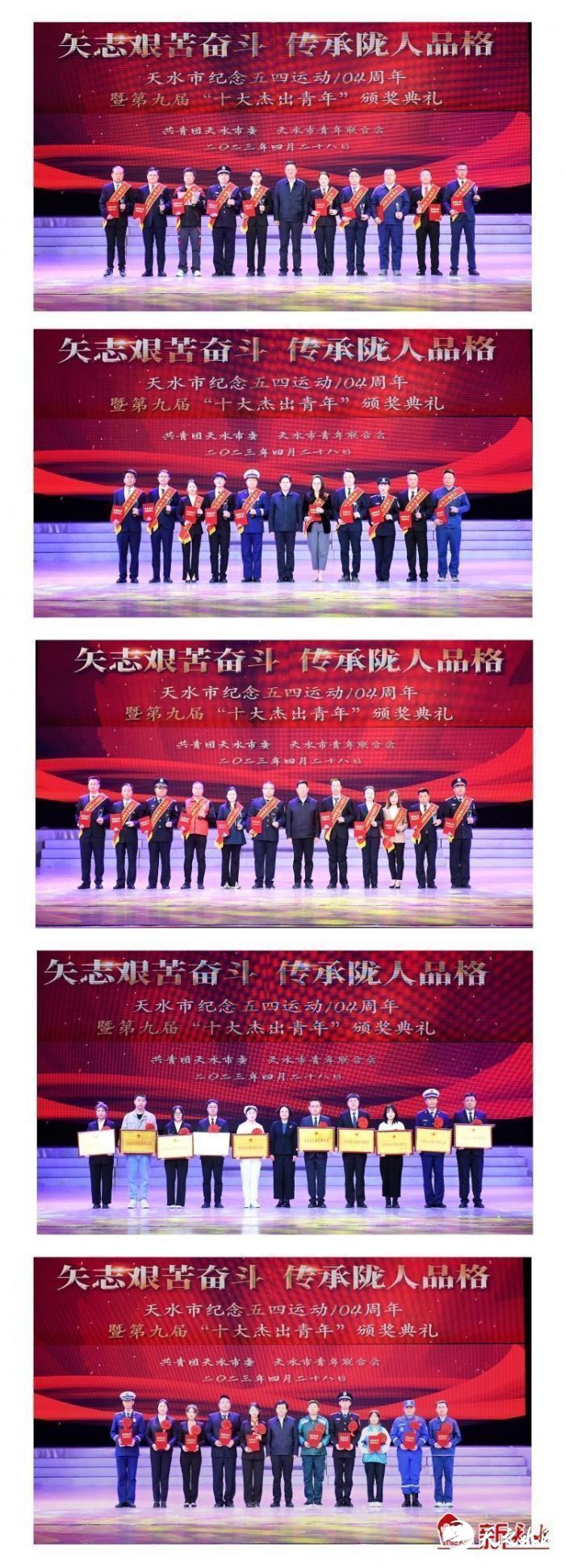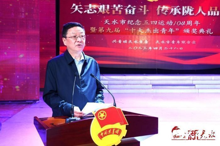 新天水讯【记者马放】4月28日上午,天水市纪念五四运动104周年暨第九届“十大杰出青年”颁奖典礼在秦州剧院隆重举行。
