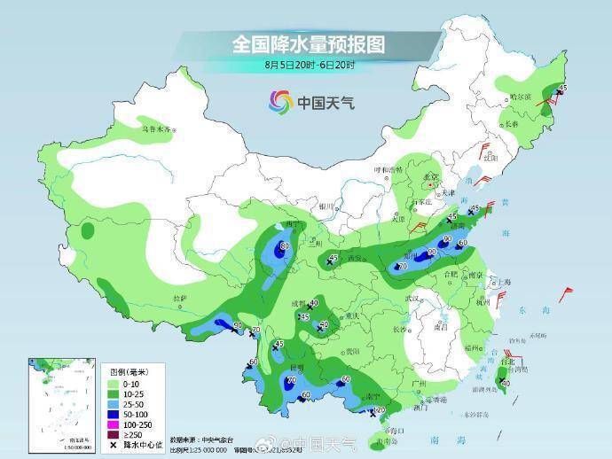 8月5日夜间至8日,广西南部和西部、广东西南部、云南等地的部分地区有大到暴雨,局地大暴雨。