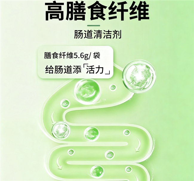 此外,每袋含5.6g膳食纤维,作为肠道“活力管家”,协同低聚果糖全面参与肠道微生态平衡和消化蠕动。