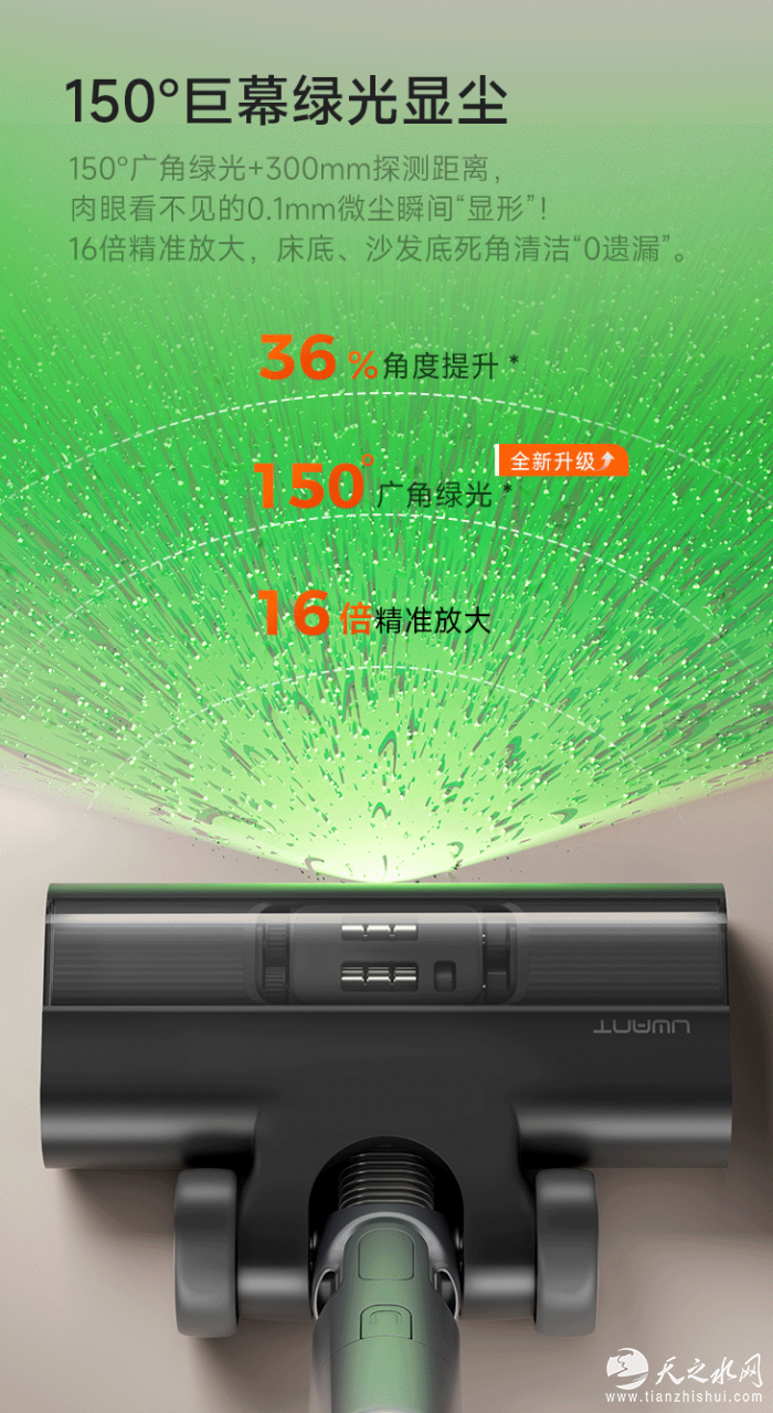 2. 150° 巨幕绿光显尘,大户型无死角不漏吸
