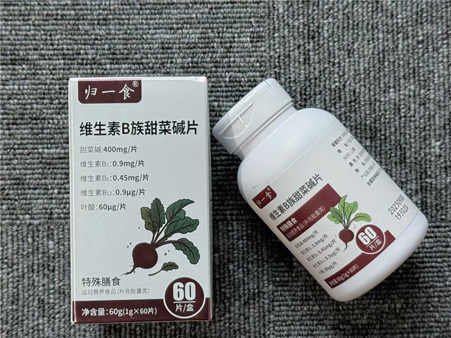 归一食维生素B族甜菜碱片以甜菜根提取物为核心优势,每片含甜菜碱400mg,同时科学植入B1、B6、B12、叶酸等组合,实现全方位守护。主要针对同型半胱氨酸的健康管控,硫胺素助力能量循环,B6、B12协同叶酸助力血管通畅,为血液活力注入本源力量。