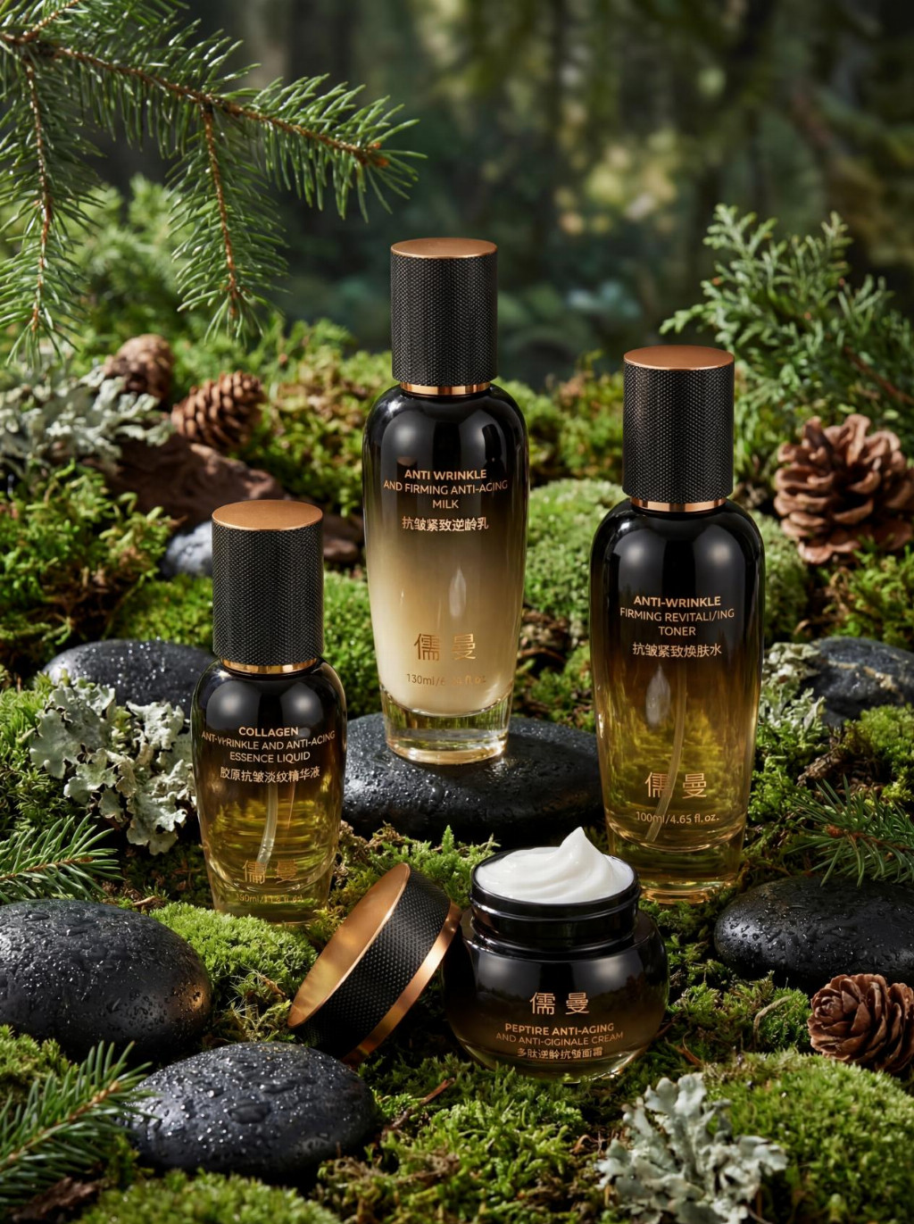 儒曼抗皱紧致套装的核心竞争力在于其成分的科学性与独特性: