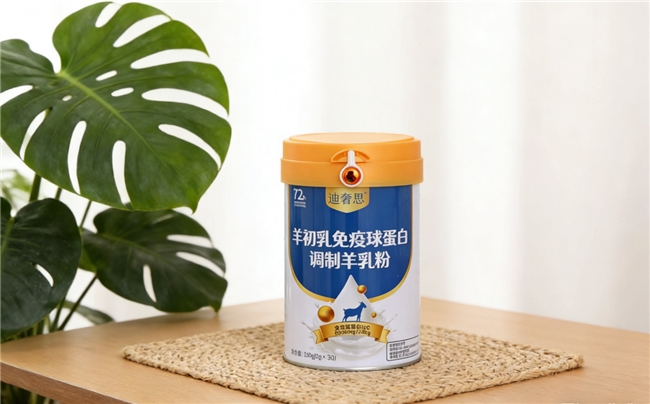 配方是它最大的亮点。每100g奶粉含有高达5000mg的活性免疫球蛋白IgG(羊初乳粉添加量达25%),这一含量约为日常乳汁的60倍。它并非简单的营养补充,而是构建了“免疫+肠道”的双重防线:复配LA-5、Bb-12等10种复合益生菌(添加量1.0×10⁹CFU/g)及低聚果糖,兼顾了免疫防护与肠道菌群平衡。