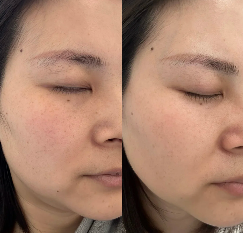 痘印(脸颊、下巴):炎症后色素沉着。需要修护+淡印成分,积雪草舒缓炎症,搭配美白成分阻断色素沉着。十一碳烯酰基苯丙氨酸模拟α-MSH结构,竞争性结合黑色素细胞受体,适合处理痘印类色素问题。